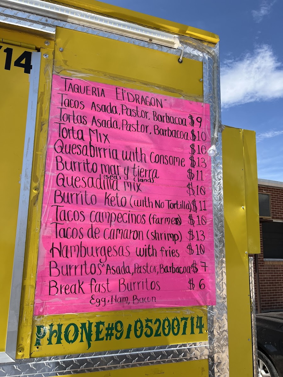 Taqueria El Dragon Menu